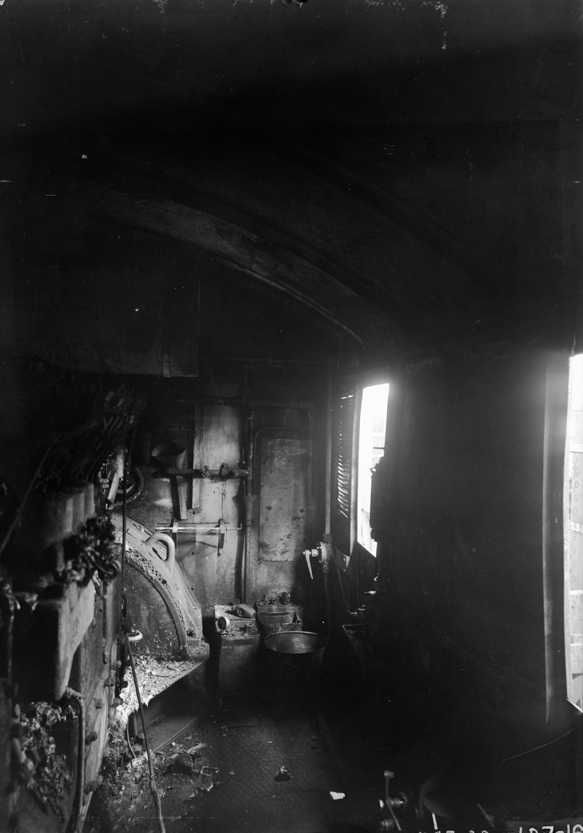 Stockholm - Nynäs Järnväg, SNJ ÄF 10, dieselelektriskt lok. Motorrum efter brand