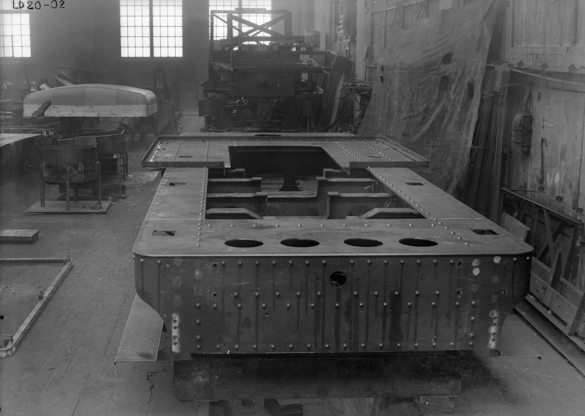 Statens Järnvägar, SJ Zss 106 under byggnad. Ramverket. Kockums Mekaniska Verkstads Aktiebolag