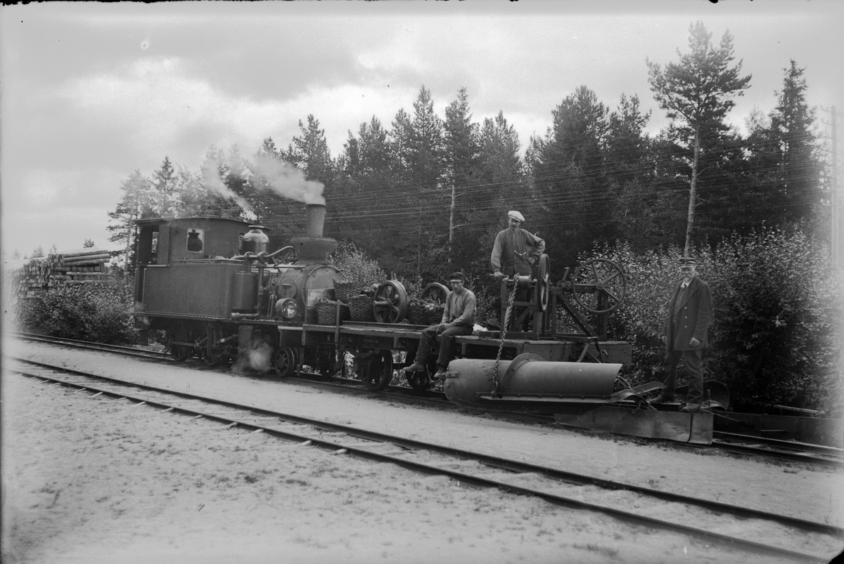 Norra Hälsinglands Järnväg, NHJ lok 3 med från Dala - Ockelbo - Norrsundets Järnväg, DONJ, inlånad ballastplog.