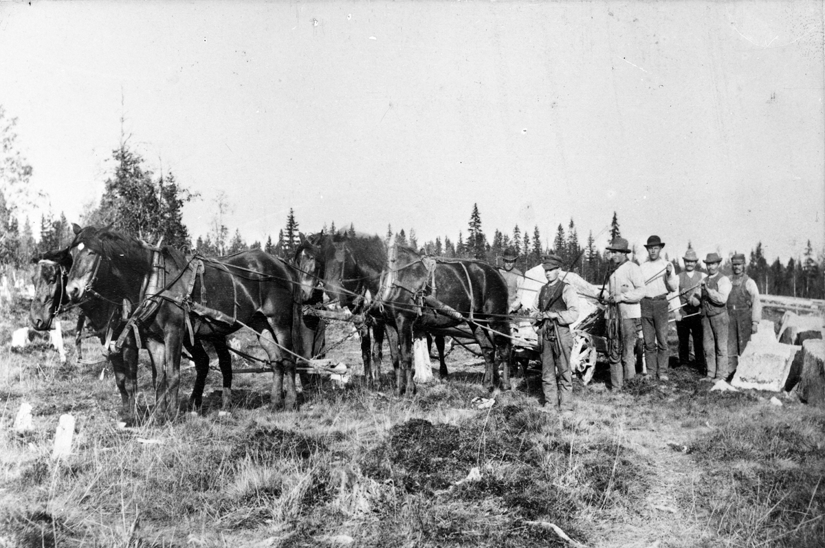 Transport av materiel till bro över Öre älv. Statens Järnvägars egna hästar