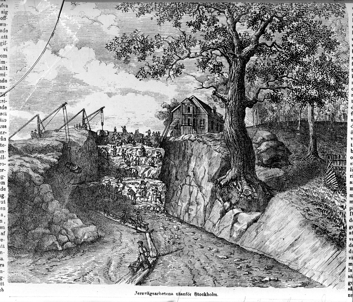Banbyggnad utanför Hornstull - Liljeholmen. Ur Ill. Tidning 1858-08-14