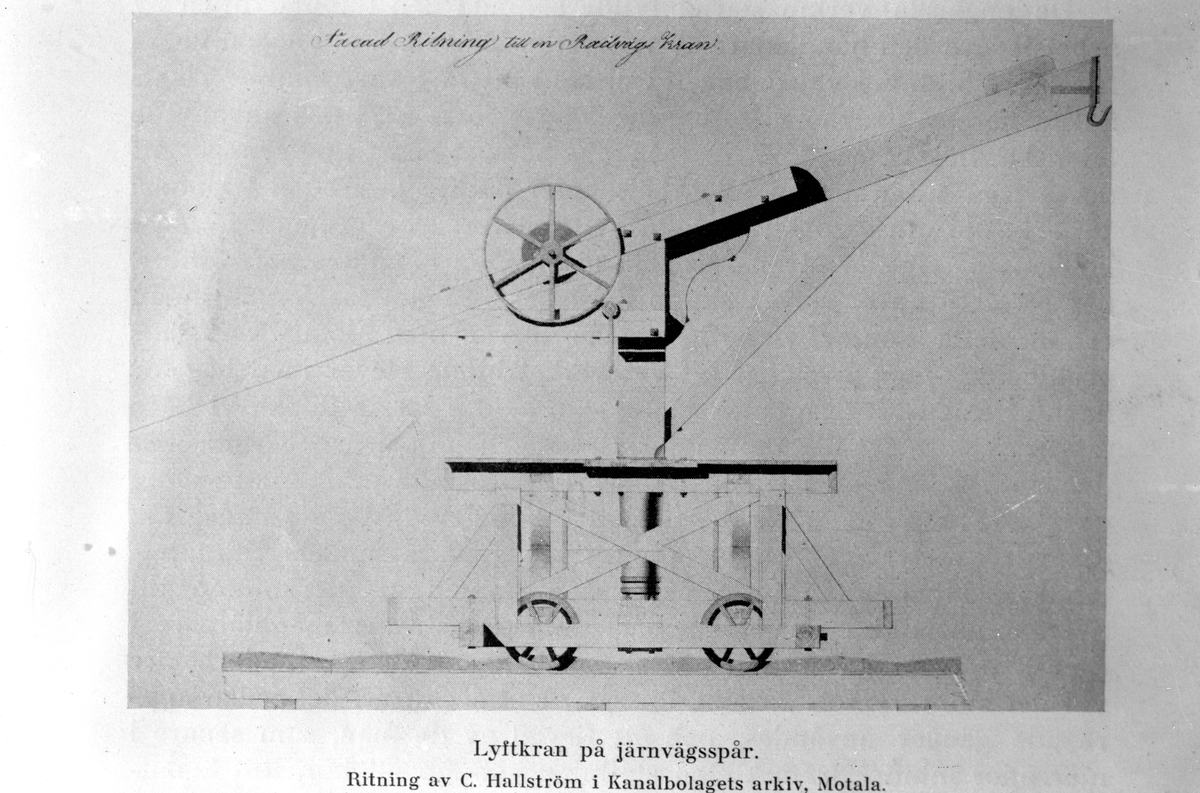 Titel: Lyftkran på järnvägsspår vid Göta kanals byggande
