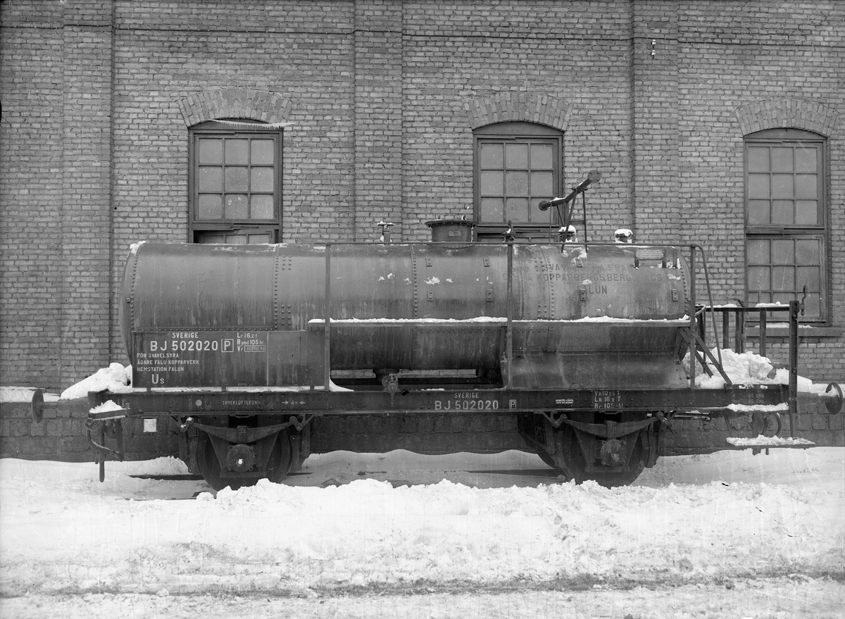 Bergslagernas Järnväg, BJ Us 502020. Tankvagn för svavelsyra. Ägare: Falu Kopparverk.