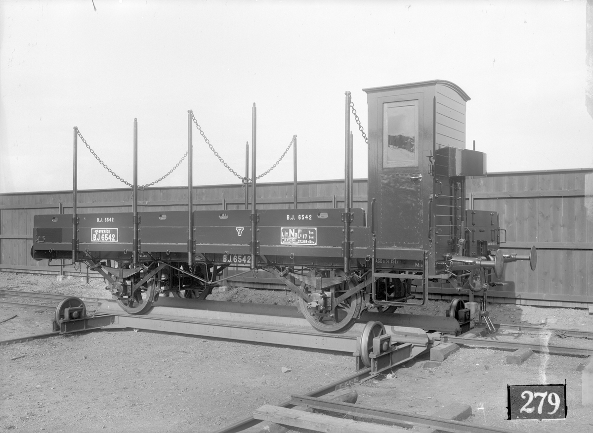 Bergslagernas Järnväg, BJ N3 6542. Stolpvagn med låg vägg.