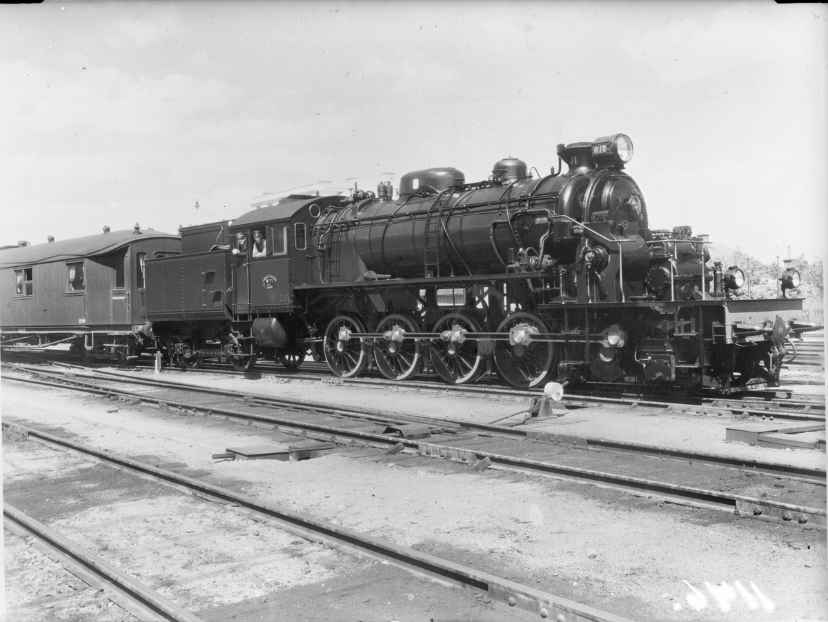 Trafikaktiebolaget Grängesberg - Oxelösunds Järnvägar, TGOJ M3t 71. Ångturbinlok med tåg.