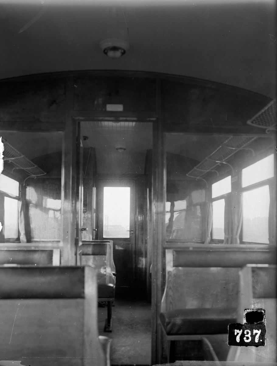Interiören av Östra centralbanans (ÖCJ) motorvagn 22, tillverkad av AB Svenska Järnvägsverkstäderna.