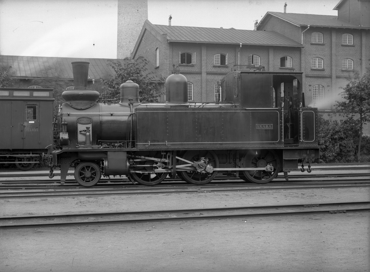 LSSJ lok 1. Fick namnet Skara. Leveransfoto. Loket tillverkades av Nohab. Skrotades 1955.