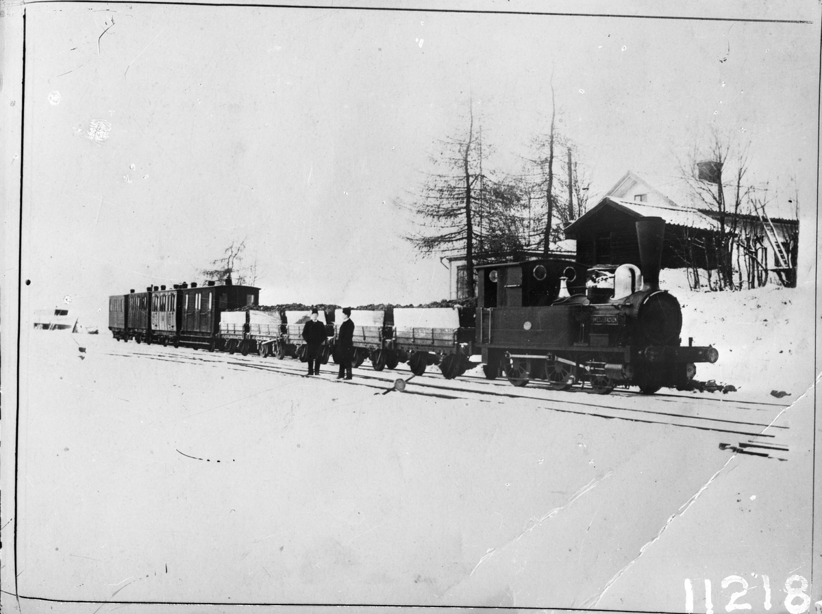 Wessman - Barkens Järnväg, senare Smedjebackens Järnväg, SmbJ, lok 3 "Smedjebacken." Marnäs station senare ändrad till Ludvika.