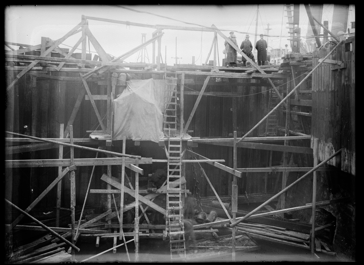 Titel: Bygge av färjeläge, troligen vid Malmö F.