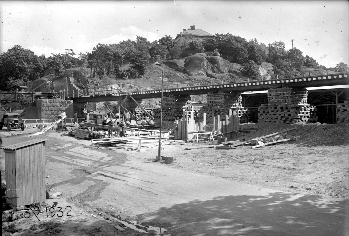 Bygge av viadukt vid Roslagstull