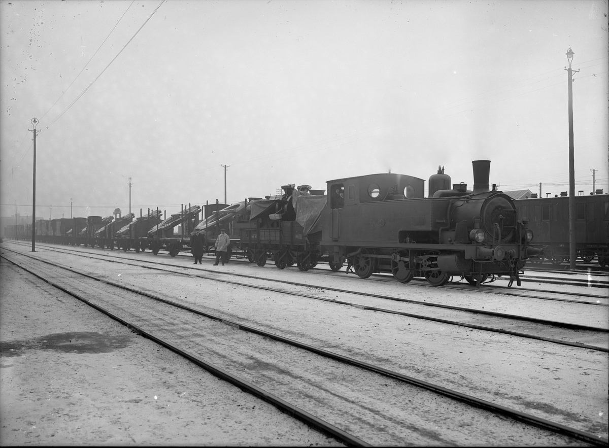 Titel: SWB U 12. Ånglok med godståg. Loket tillverkades 1899 och skrotades 1959.