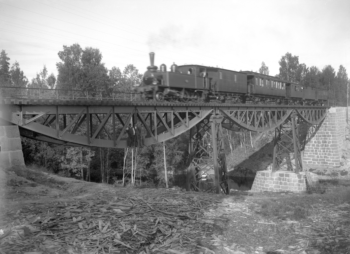 NKJ-Norra Karlskoga Järnväg lok 12 med persontåg på bro