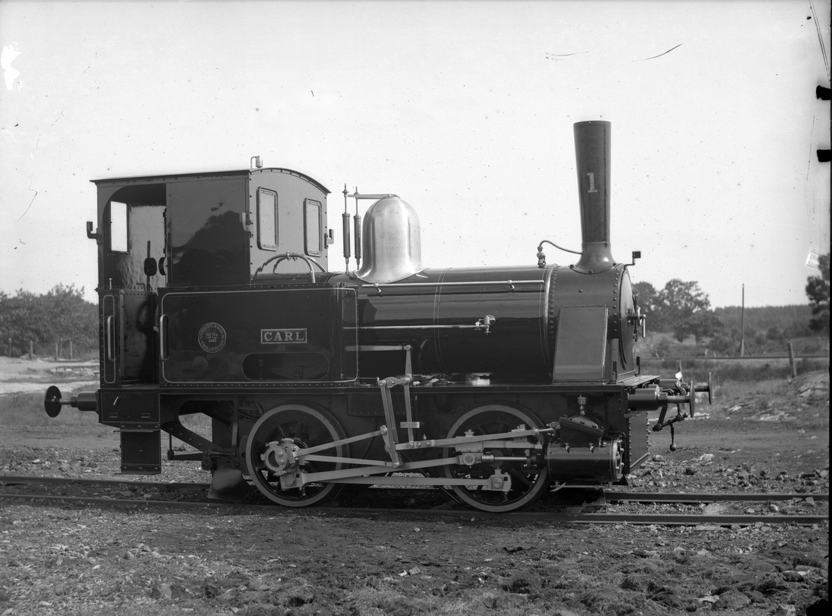 Carl Jehander entreprenör lok 1. Fick namnet Carl. Loket tillverkat av Nohab. Leveransfoto.