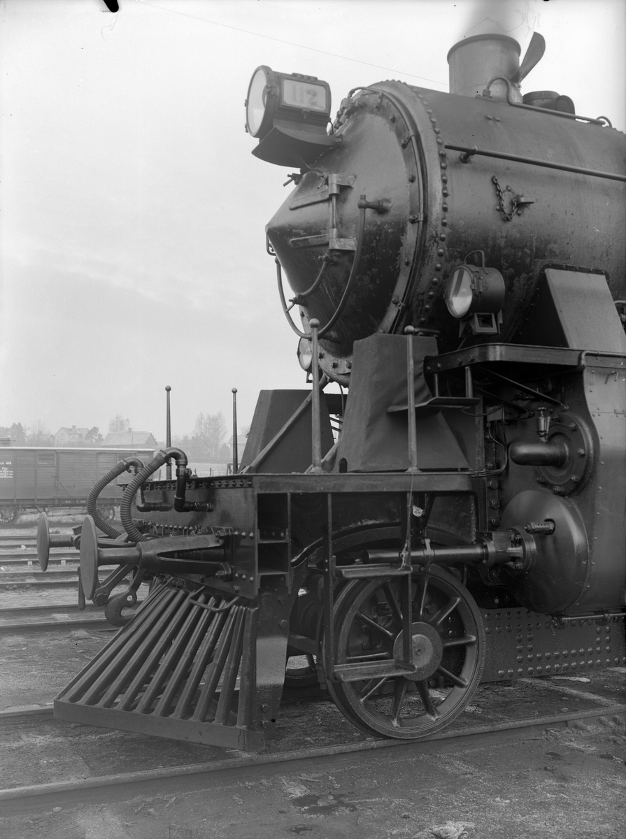 BJ H3s 112. Lokfronten. Loket tillverkades 1927 av Nohab, tillverkningsnummer 1797. Bilden är troligen tagen vid leveransen. Såldes 1948 till Sveriges Järnvägar, fick littera SJ A8 1808. 1973 Såldes til Bergslagernas Järnvägssälsskap.