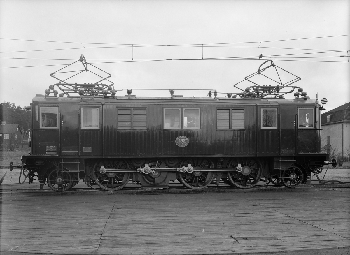 Statens Järnvägar, SJ Dg 132 med förarhytter av stål och sidodörrar utan fönster. Leveransfoto.