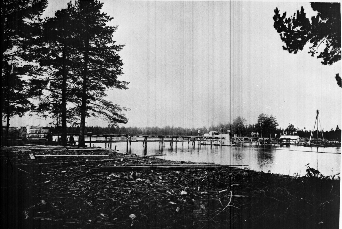 Järnvägsbro över Vanån under byggnad. Kristinehamn - Mora