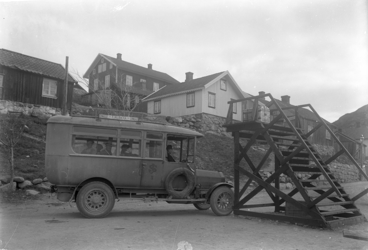 Statens Järnvägar, SJ buss 3, godsramp med koffert framför bussen.