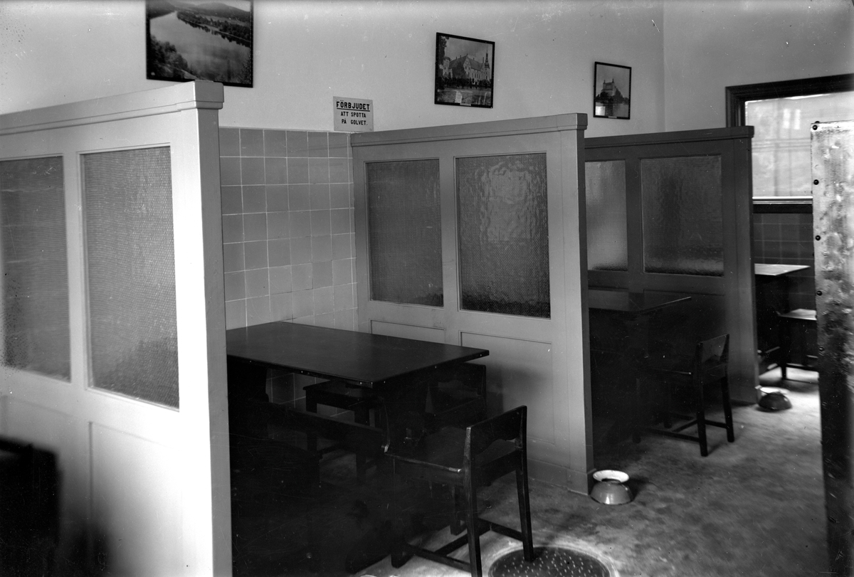 Övre matrum, driftverkstaden. Spottkopp på golvet