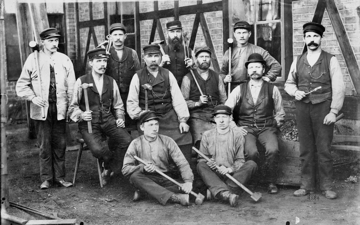 Titel: Verkstadspersonal i Bollnäs, (SJ). Vid järnvägsspåret mellan Holmsveden och Bollnäs