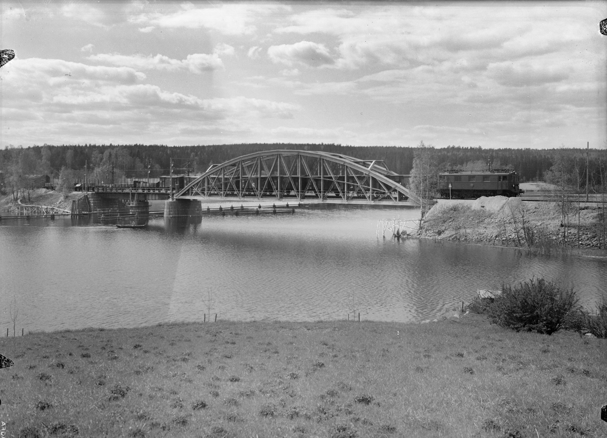 Statens Järnvägar, SJ godståg 4354, på järnvägsbron över sjön Kratten, sydväst om Fagersta.