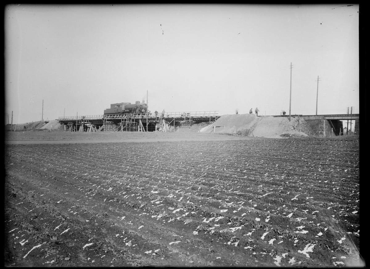 Ombyggnad av viadukten över Malmö Ystads Järnväg, på sträckan mellan Malmö och Trelleborg. Provbelastning av provisorisk viadukt.
