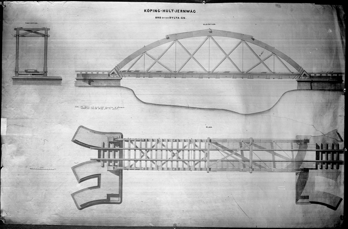 Ritning på bro över Dyltaån. Köping - Hult Järnväg