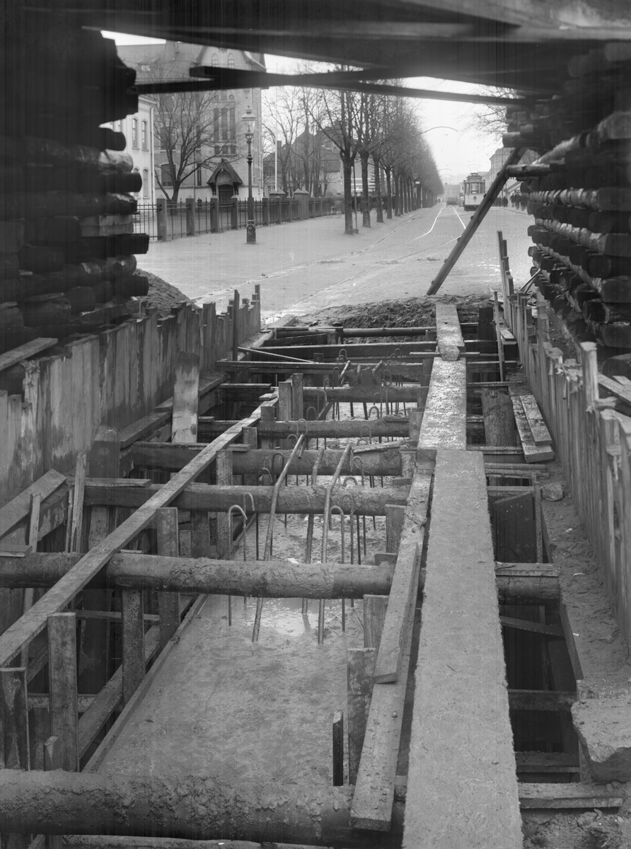 Grunden gjuten för ny mellanpelare, vägport vid Östertull. Från Ingenjör Månsson, Falköping
