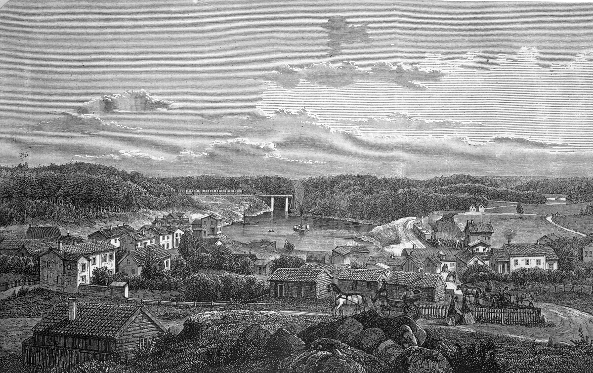 Tecknad vy, Södertelje nedre till höger.