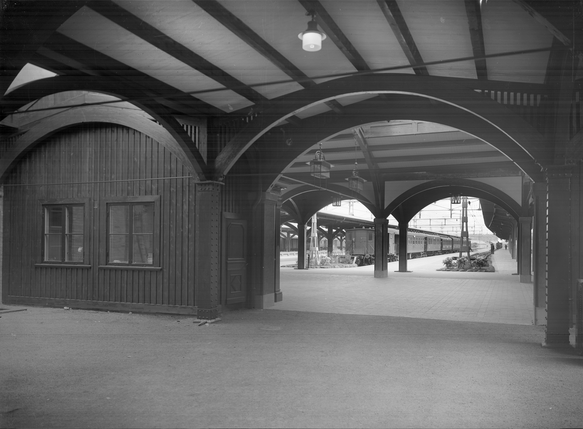 Utsikt från truckhallen mot plattformarna mot avgående tåg i Göteborg