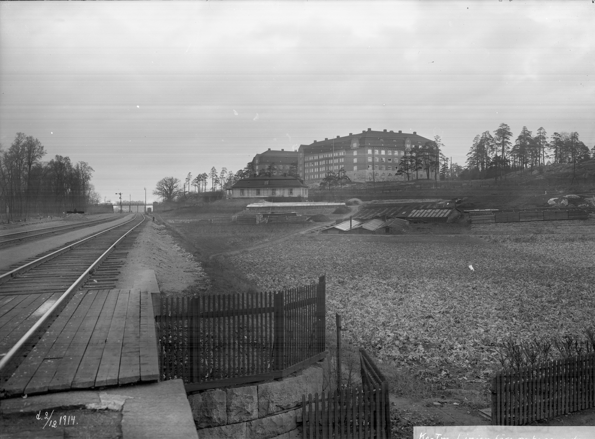 Linjen Karlberg - Tomteboda före ombyggnad jämte utsprängning för förbindelsespåret.