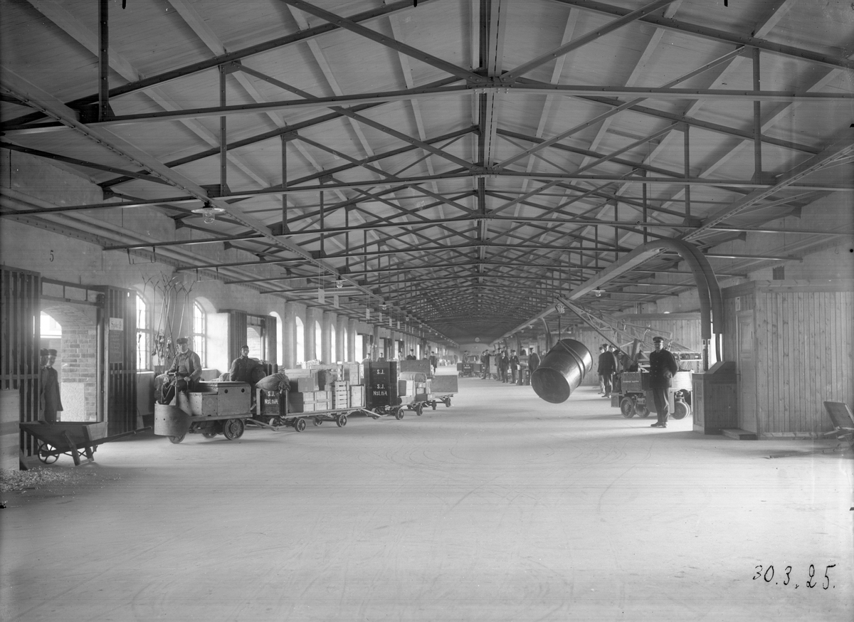 Interiör av godsmagasin för avgående gods, Stockholm Norra