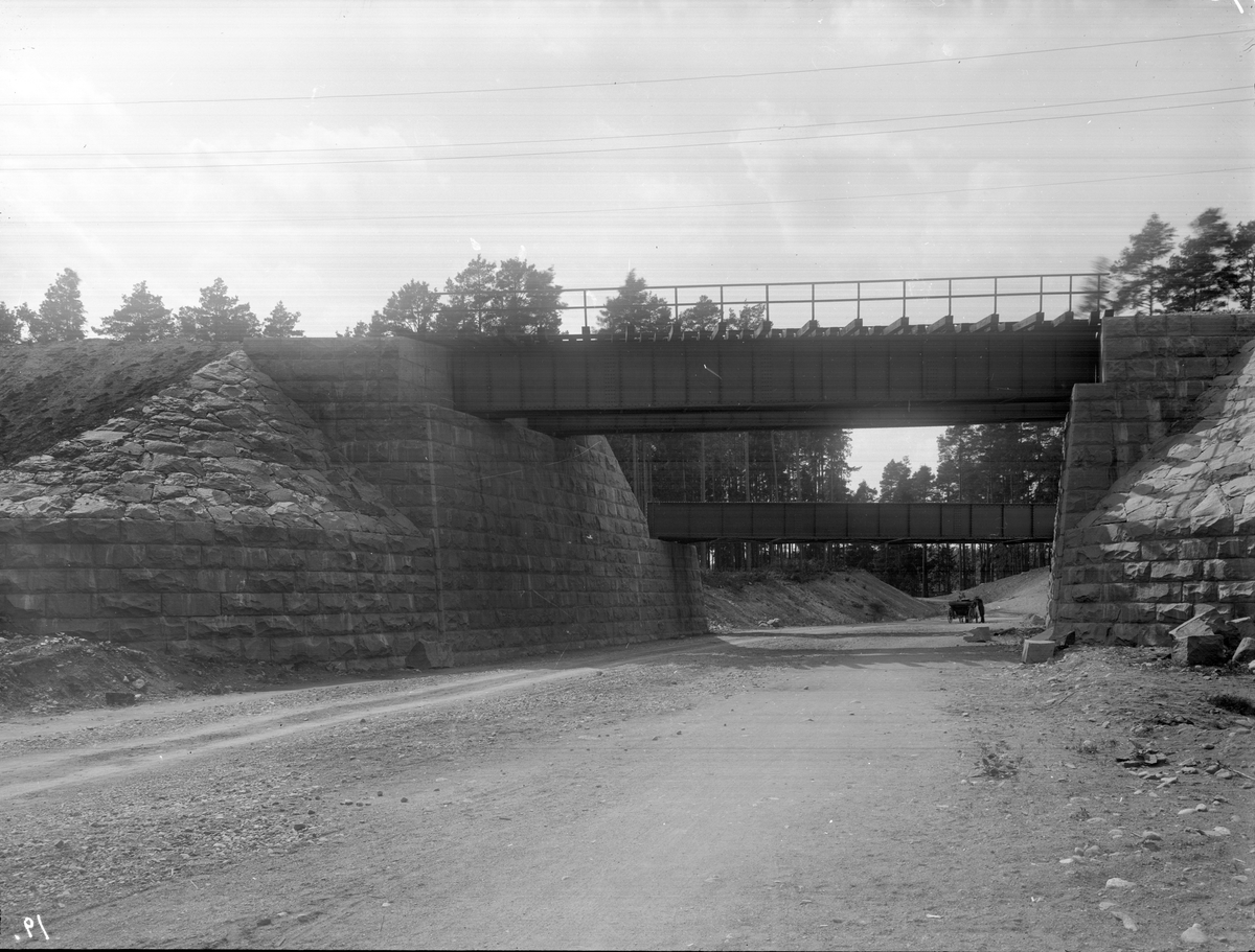 Broar. Dubbelspåret och Södertäljespåret i norra ändan av Södertälje Södra bangård passerar över Hertig Karls väg.
