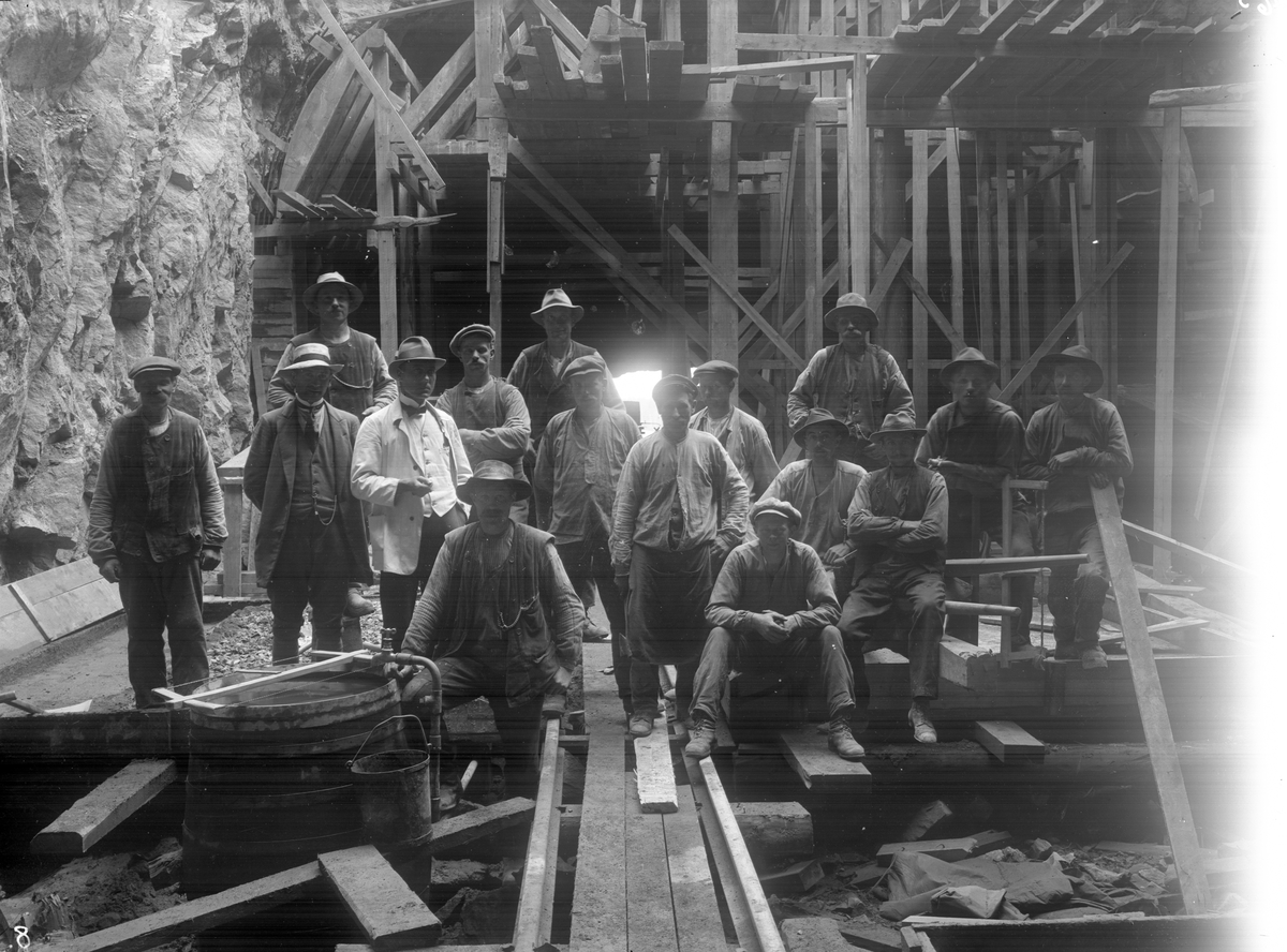 Strömgärdena Rönninge Ström. Torrsättning för förstärkningsvalv i Strömtunneln
