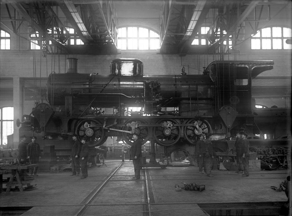 BJ N3 77. Lokverkstaden med lok under lyftning
