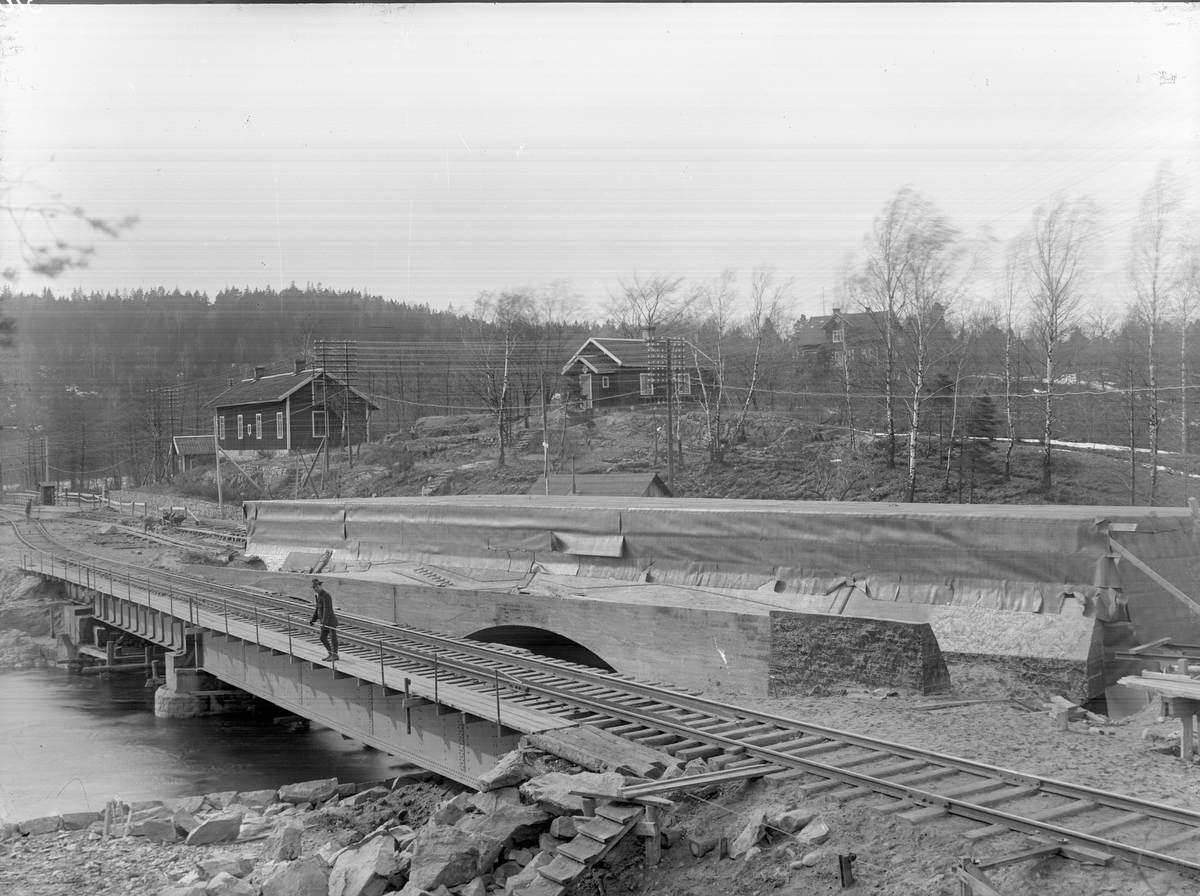 Järnvägs- och landsvägsbro över Säveån. Partille - Alingsås