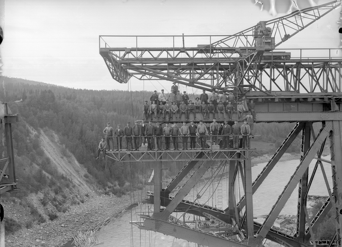 Bro över Ångermanälven med personal. Långsele - Mellansel