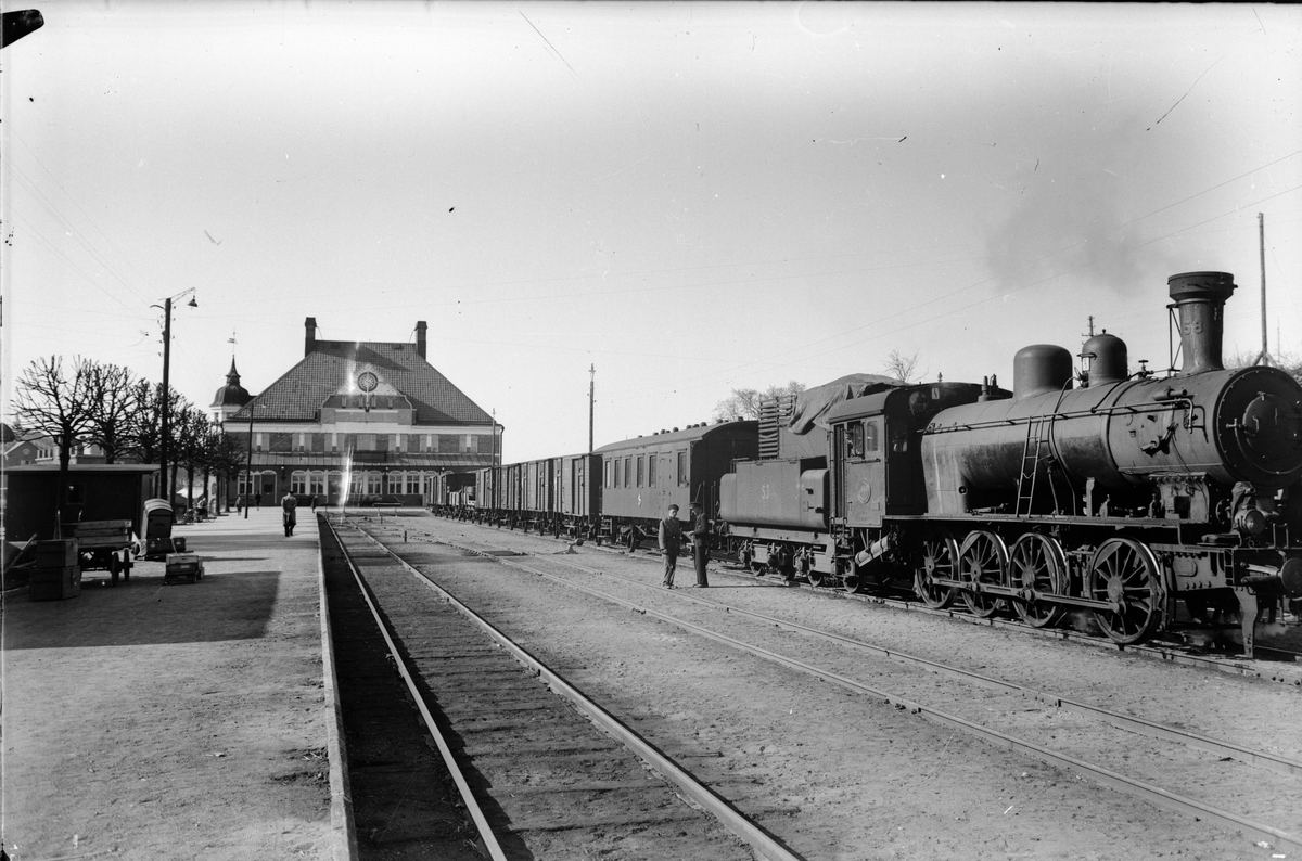 Statens Järnvägar, SJ E 1458 med godståg vid Oskarshamn station.