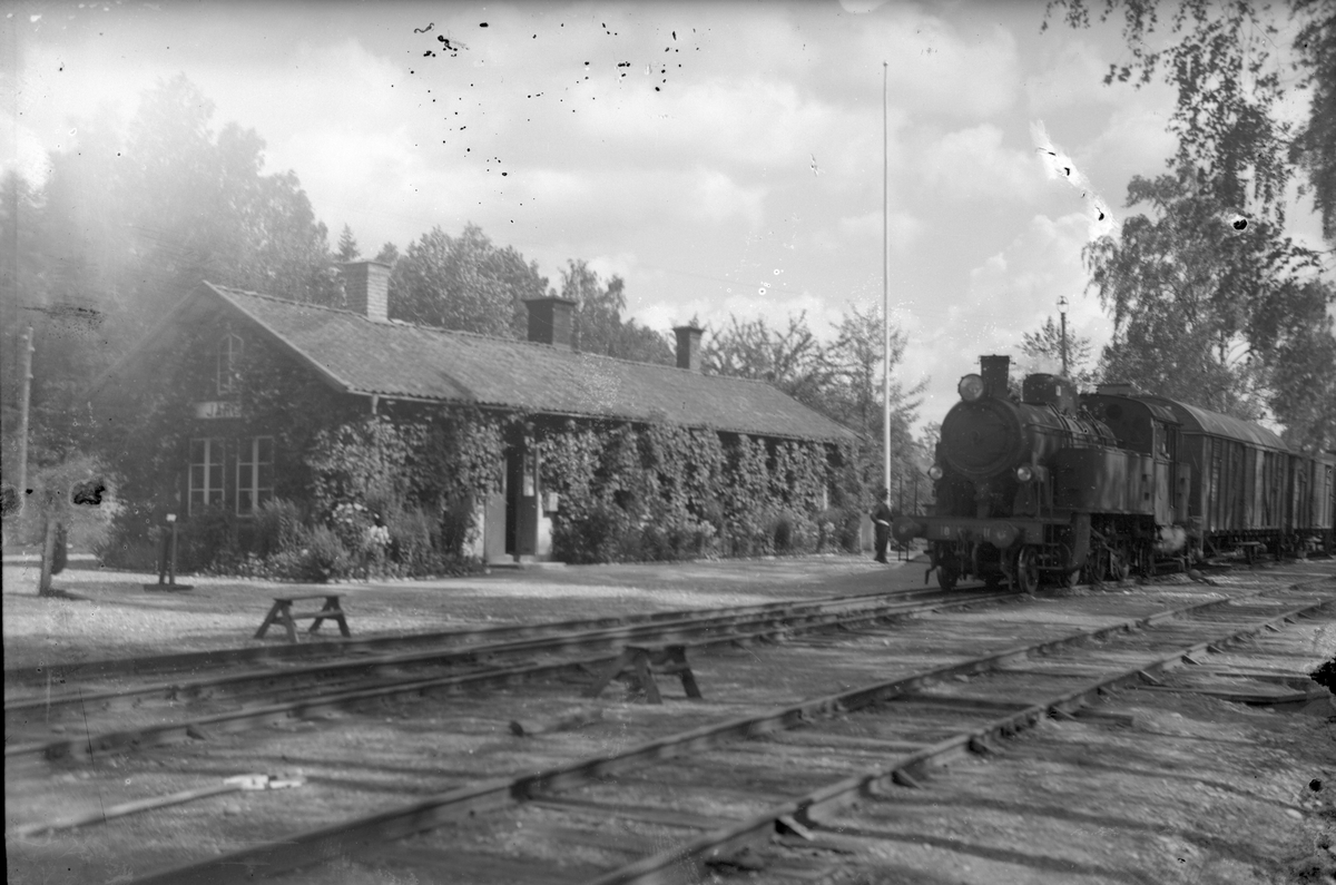 Järle station. Nora Bergslags Järnväg, NBJ lok 18.