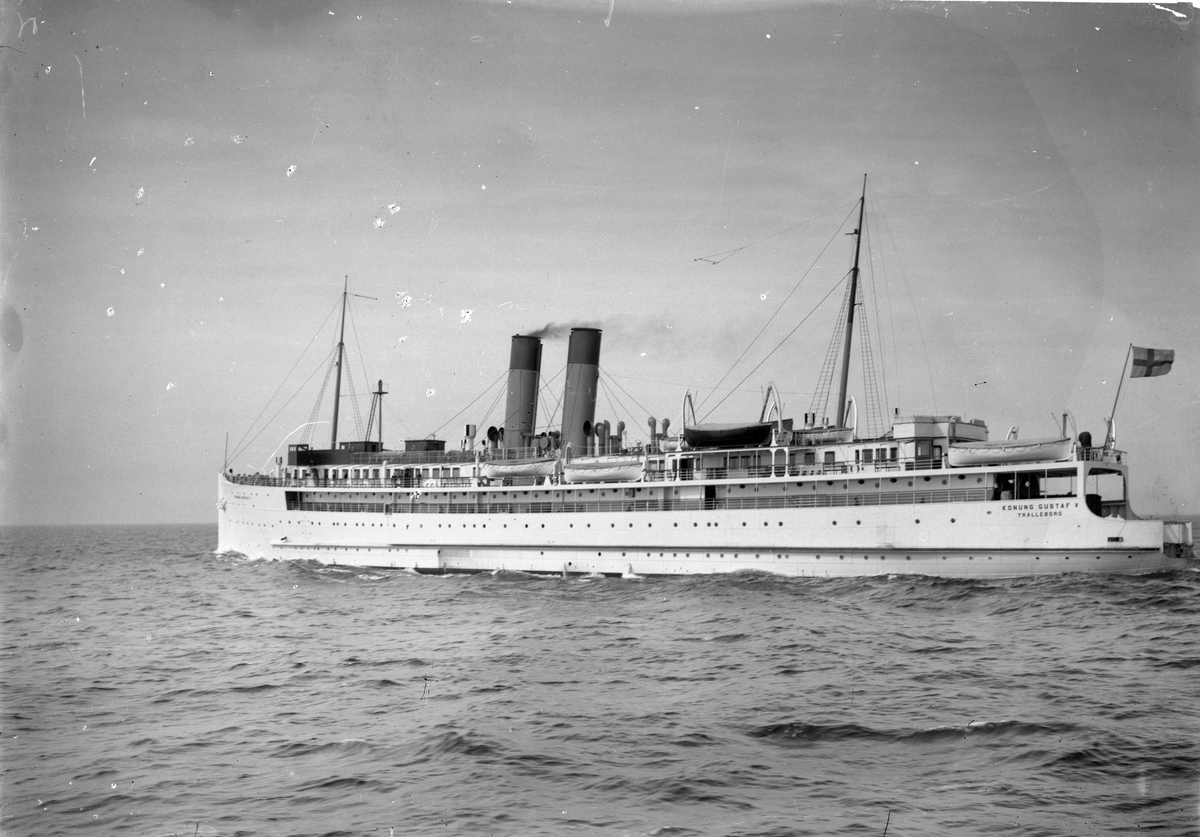 Titel: s/s "Konung Gustaf V" Byggd 1910 på Lindholmens varv i Göteborg. Upphuggen 1968 Tafikerade rutten Trelleborg - Travemünde.