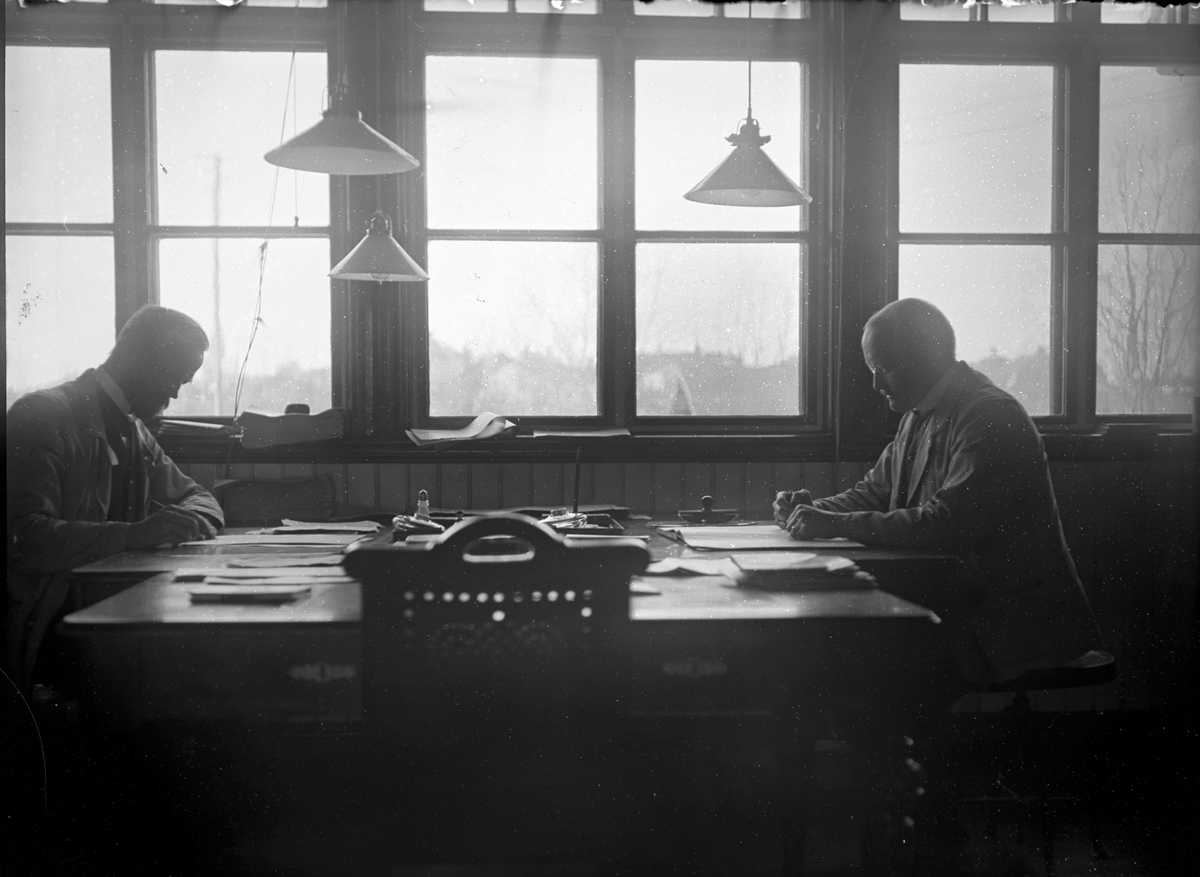 Från vänster Fkbt Lundström, Kontorist M Sölvén