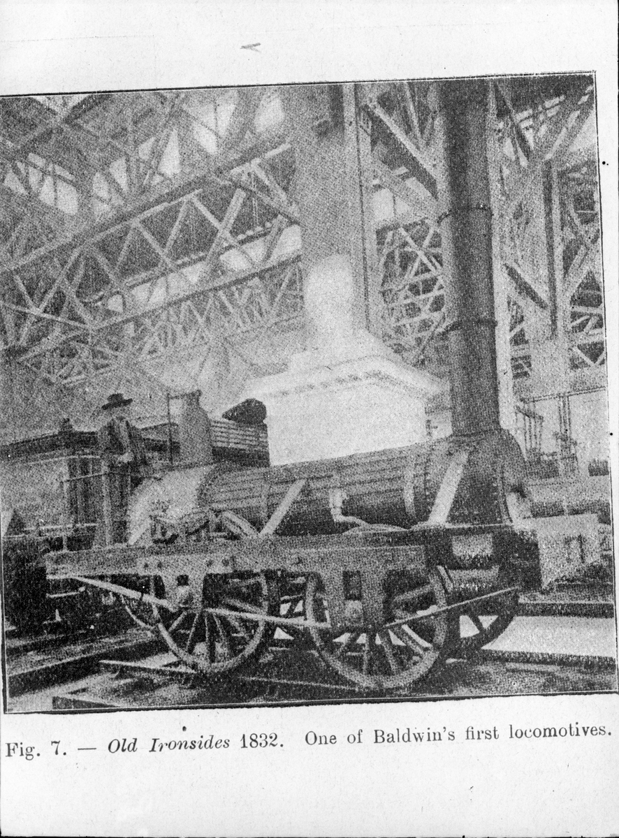 Philadelphia, Germantown & Norristown Railroad, PG&N lok "Old Ironsides". Byggt 1832 av M.W. Baldwin. Bilden är tagen vid 1904 års Louisiana Purchase Exposition i Forest Park, St. Louis.
