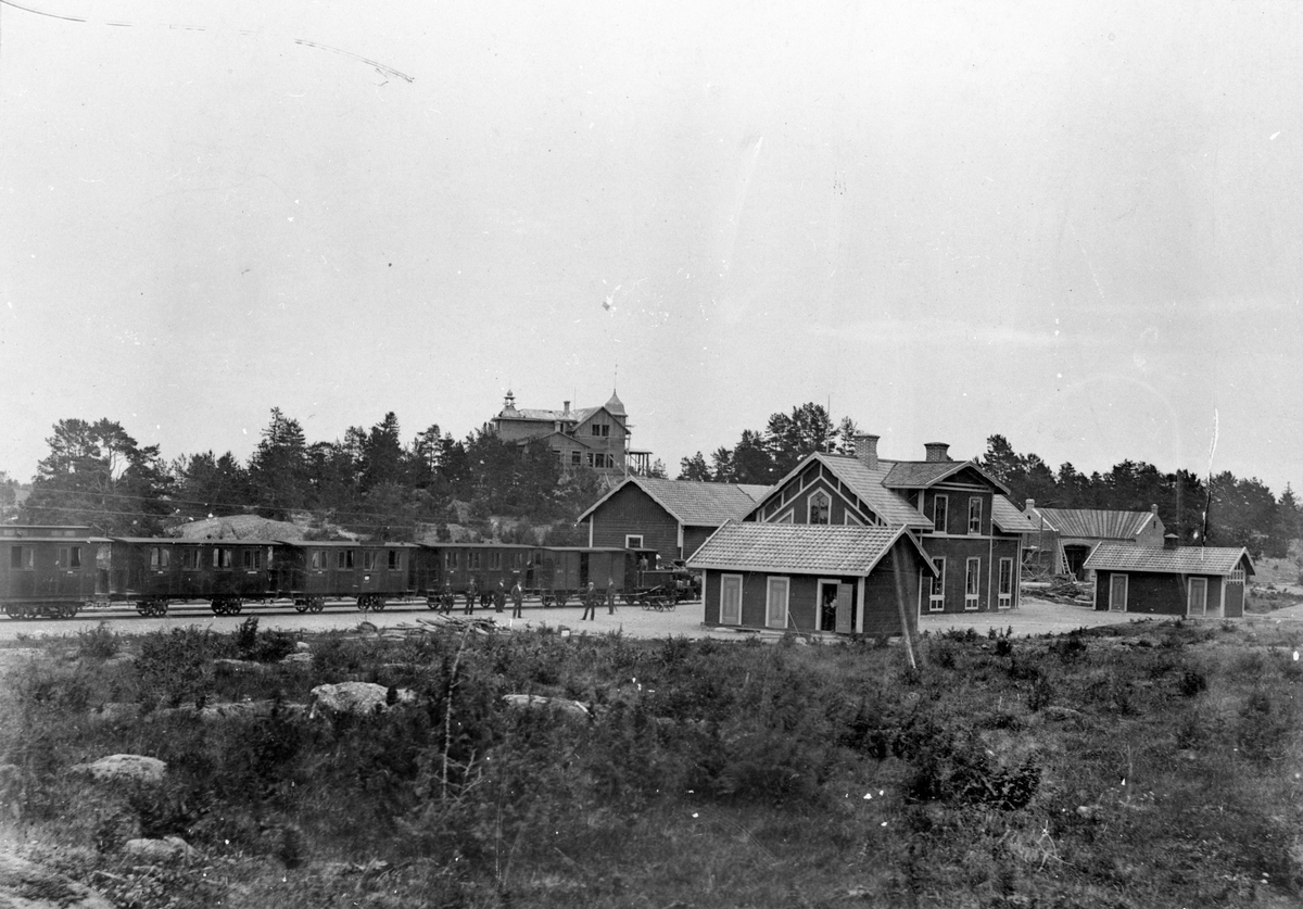 Stationen med ångloksdraget persontåg.