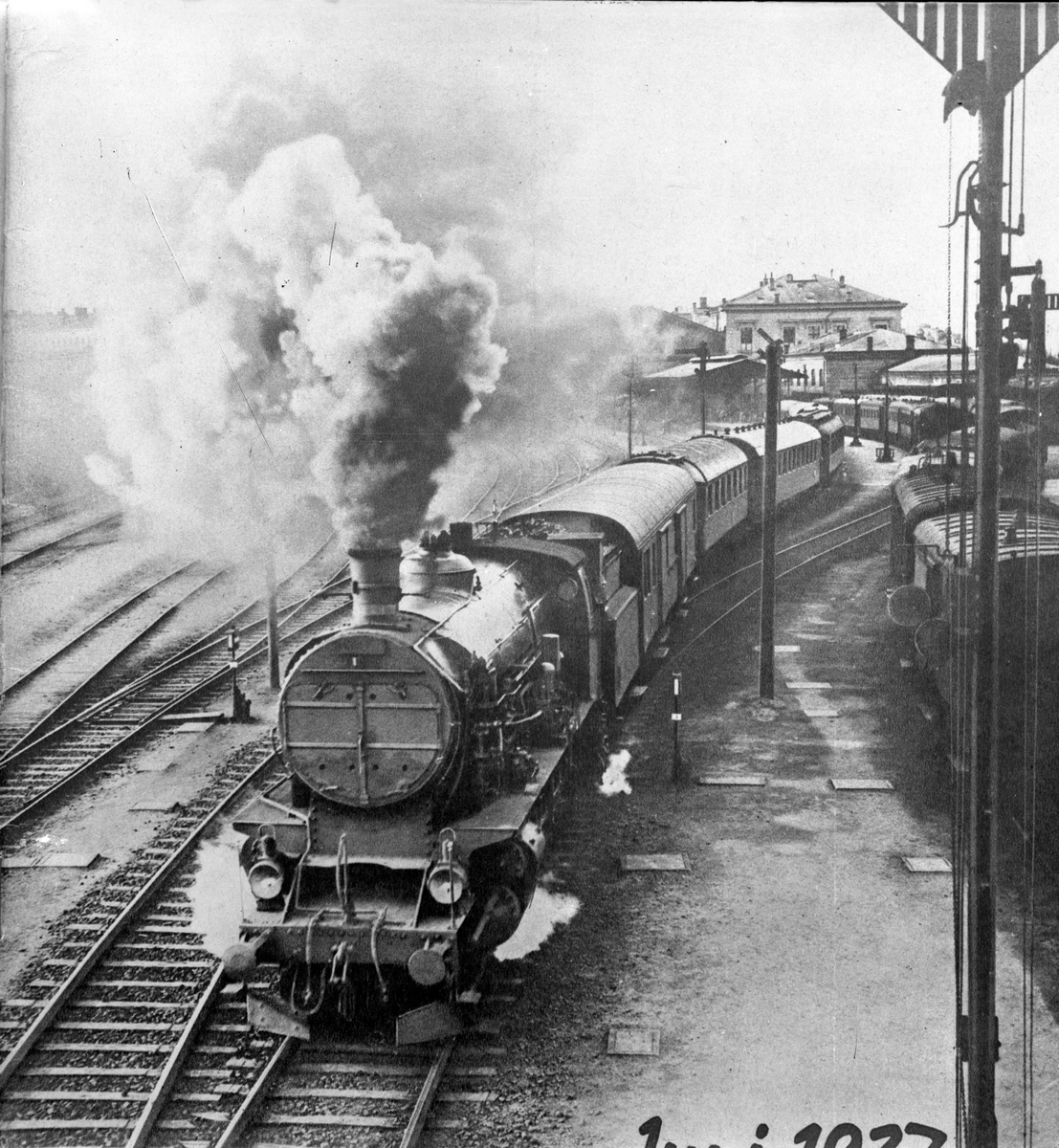 Persontåg draget av ånglok av den typ som ursprungligen betecknades som Südbahn 109.