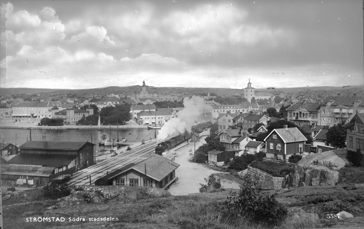 Vy över Strömstad station med omnejd.