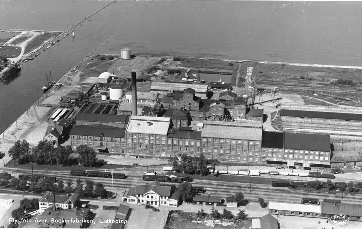 Flygfoto över sockerfabriken i Lidköping.