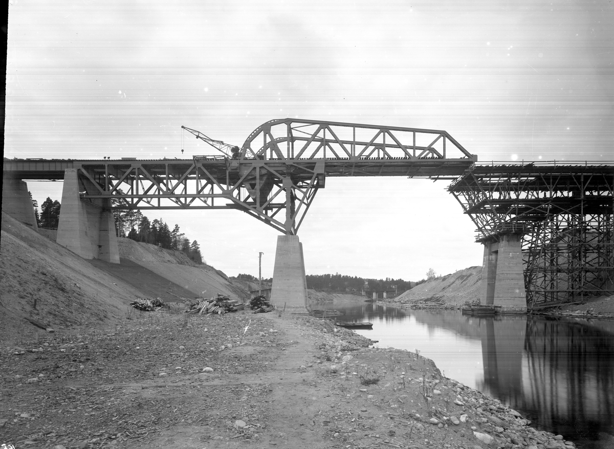 Södertälje Kanal. Totalvy med gamla svängbron i bakgrunden.