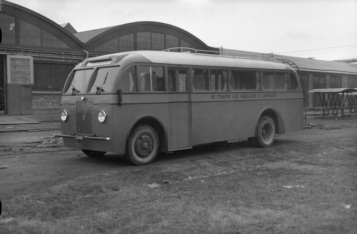 Volvo B1-buss för Haglund & Larsson. Karossen tillverkad av Aktiebolaget Svenska Järnvägsverkstäderna, ASJ. Leveransfoto.