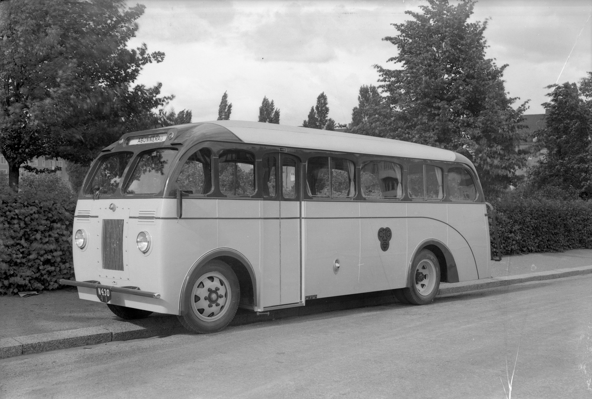 Volvo LV75-buss för Erik Dock, Laholm. Karossen tillverkad av Aktiebolaget Svenska Järnvägsverkstäderna, ASJ. Leveransfoto.