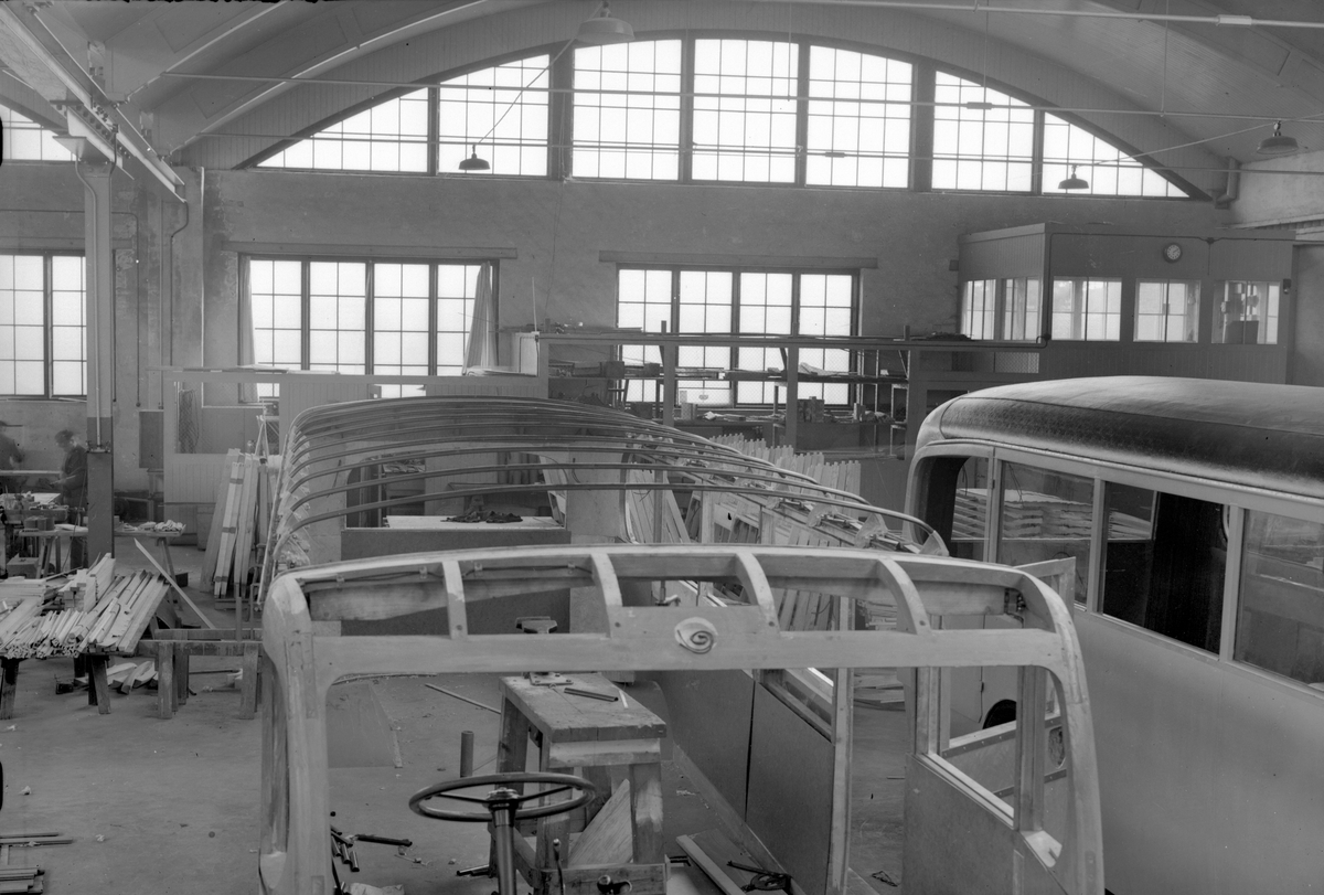 Busshallen. Tillverkning av karosser. Aktiebolaget Svenska Järnvägsverkstäderna, ASJ.