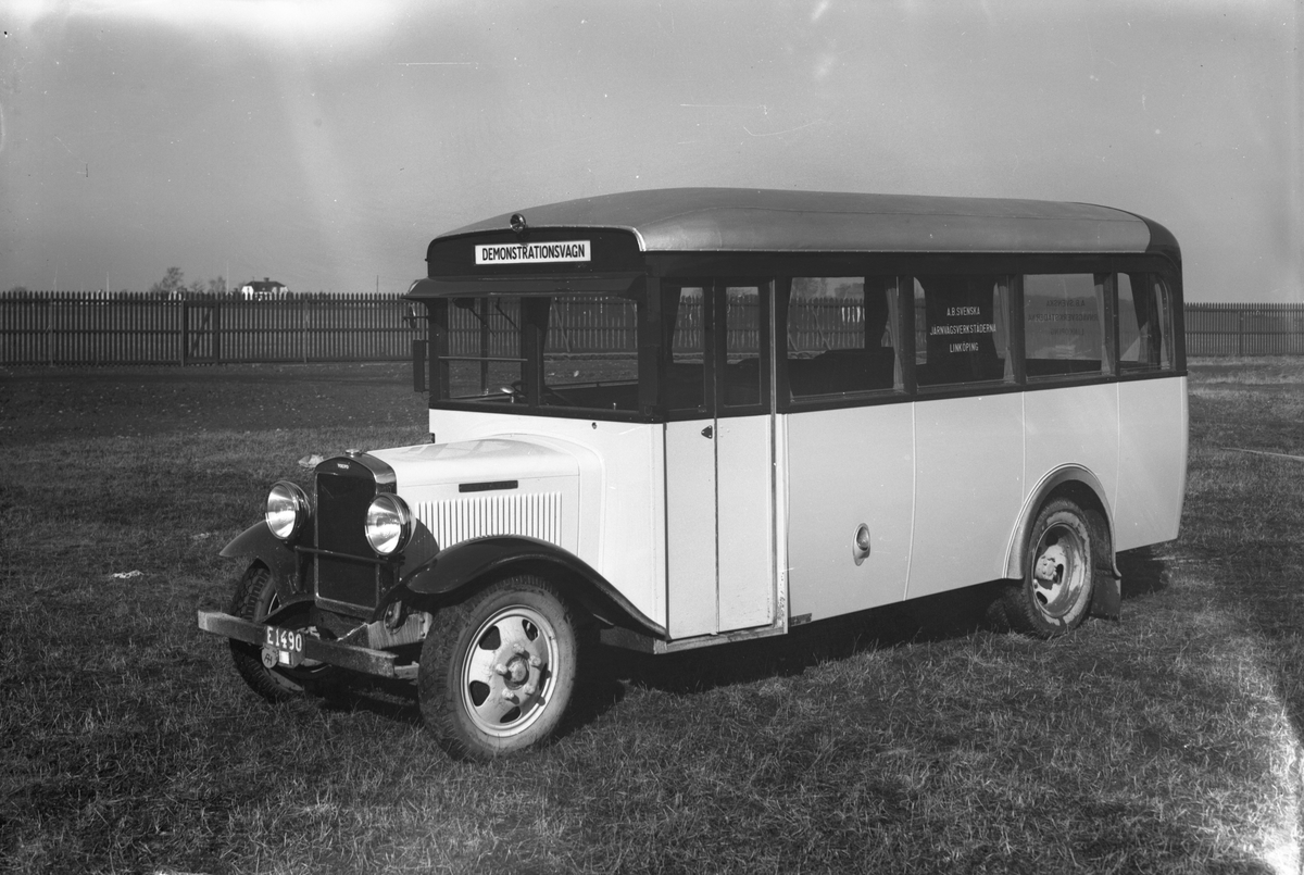 ASJ:s demonstrationsbuss, Volvo. Karossen tillverkad av Aktiebolaget Svenska Järnvägsverkstäderna, ASJ. Leveransfoto.